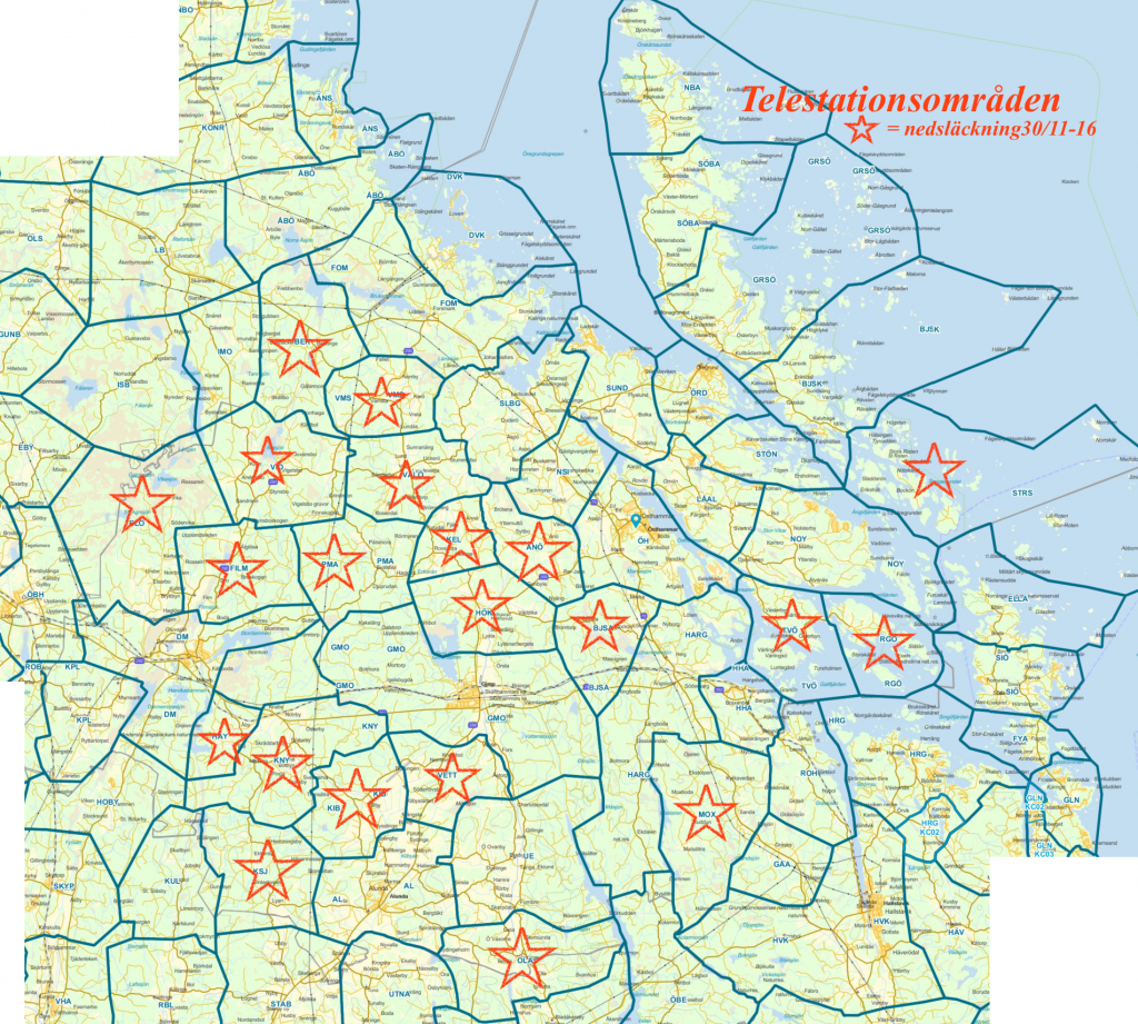 Många har frågor kring nedsläckning av fasta telenätet och en del svar om alternativa lösningar finns att få via länkar i tidigare nyhetsuppdateringar samt via telefon till diverse kundtjänster. Alla som berörs av nedsläckning ska ha fått pappersbrev från Telia, men det verkar som en del trots detta missats eller att posten inte kommit fram. I något fall kände inte ens Telias kundtjänst till att en viss adress ingår i nedsläckningsområde. På bifogad karta kan du se vilka telestationsområden som är aktuella den 30/11. På Telias hemsida https://www.telia.se/privat/aktuellt/framtidensnat-privat publiceras fortlöpande information om planer för nya områden. Ingen ytterligare telestation i Östhammars kommun berörs fram